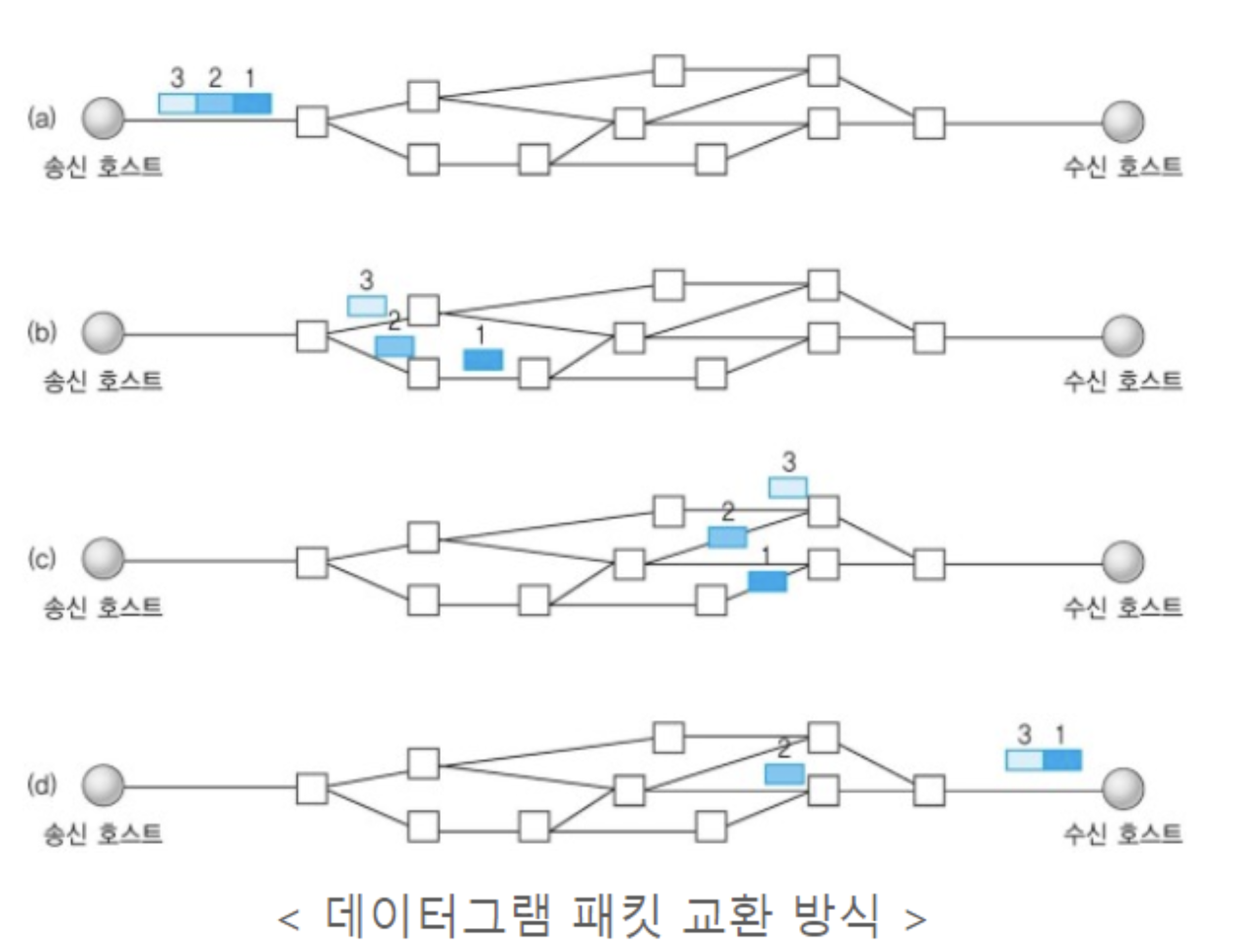 - 데이터그램방식 사용