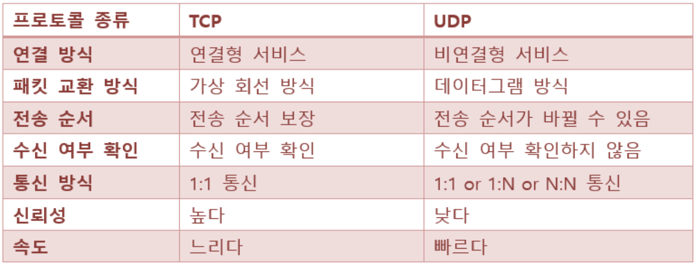 - 패킷 순서, 재조립 기능을 처리하지 않기에 연속성이 중요한 서비스에 사용