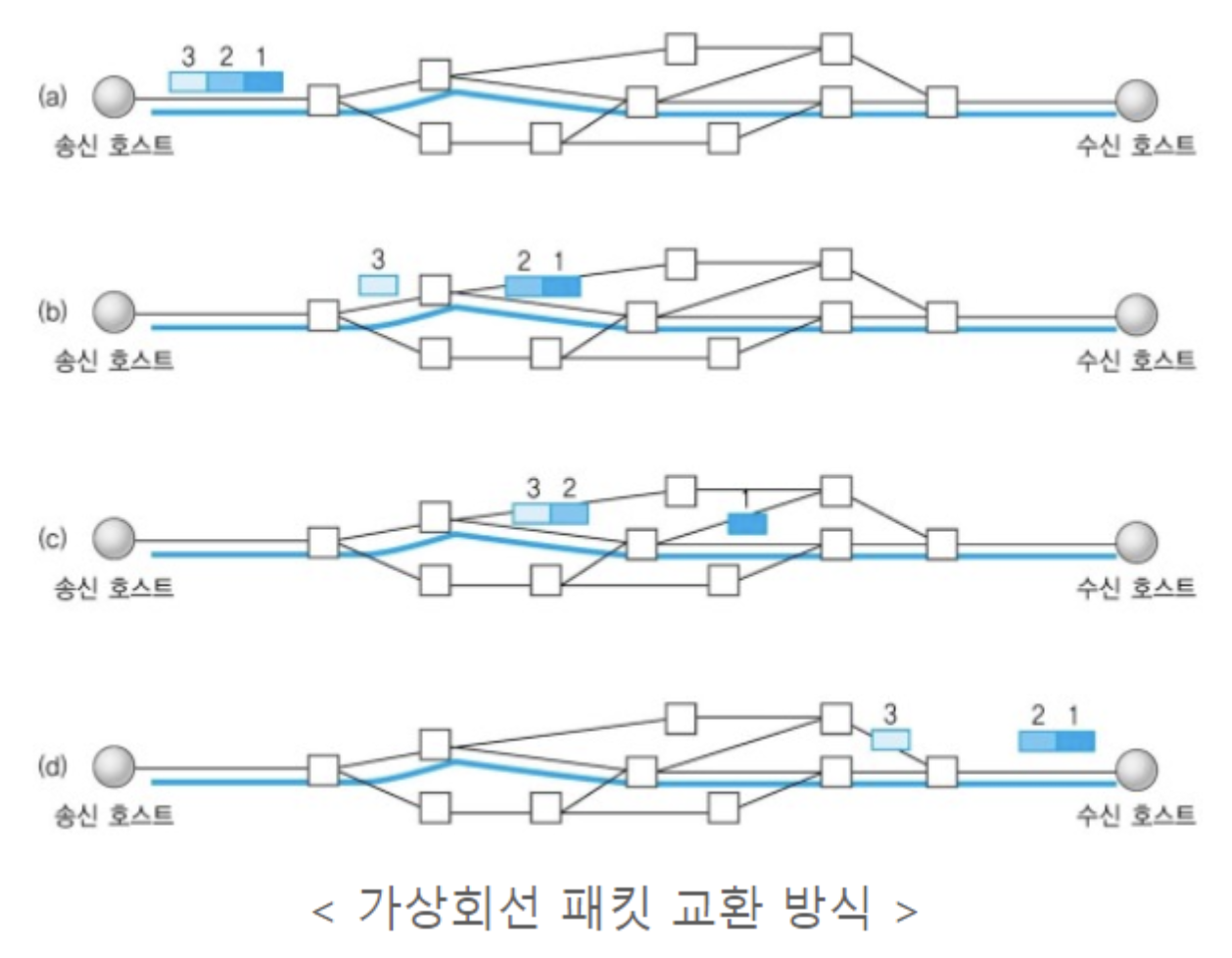 - 가상회선방식 사용