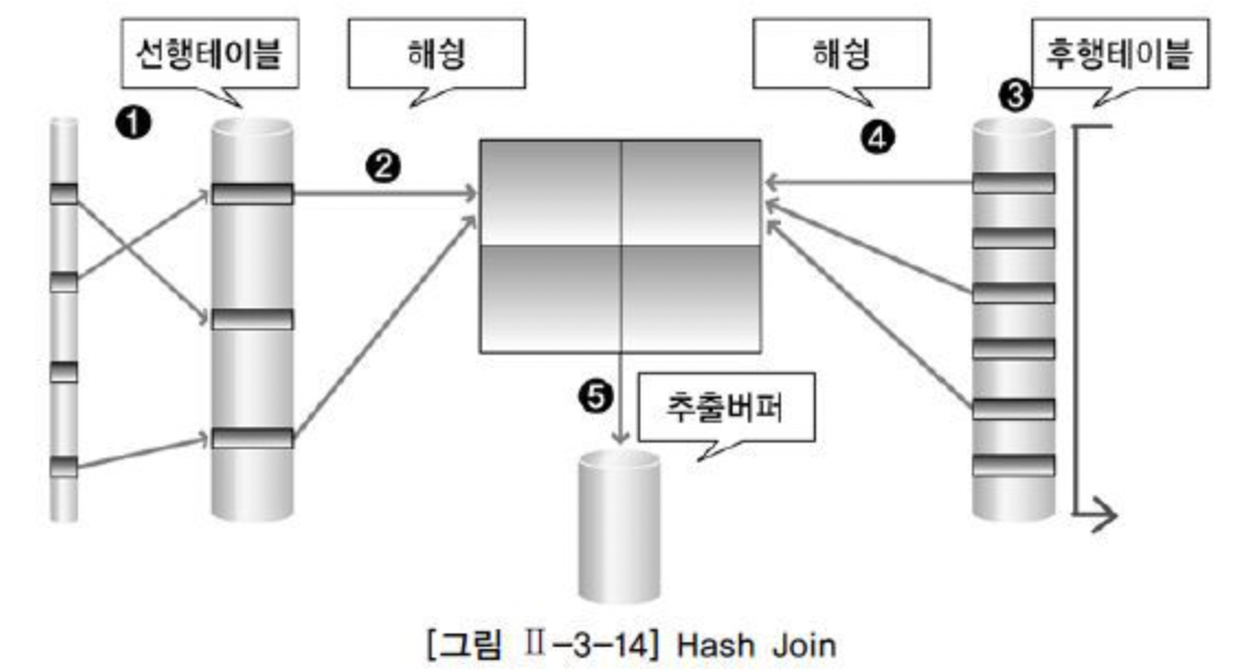 1. 선행테이블에서 키를 기준으로 만족하는 행을 해쉬함수 적용하여 해쉬테이블 생성 (조인 컬럼과 select 컬럼도 저장)