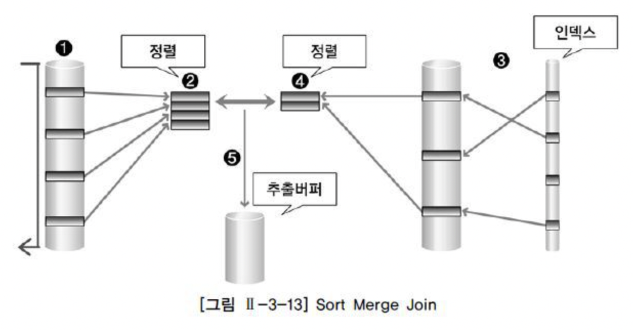 3. 정렬된 두 결과를 비교하여 조인수행하고, 성공결과를 버퍼에 저장하여 출력함.