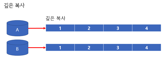 그래서 배열을 복사할때는 깊은 복사를 해줘야하고 깊은 복사는 다음 그림과 같다.