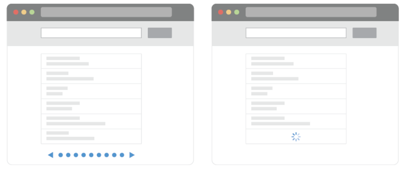 - 페이지네이션된 콘텐츠 일반적으로 몇 가지 공통된 주제 혹은 목적들을 지니고 있음