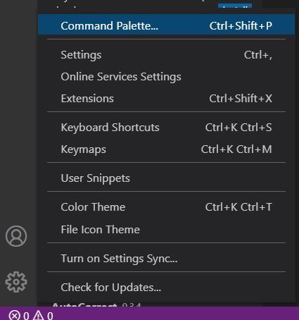 - 좌측 하단 > 설정(톱니바퀴 모양> Command Pallete... 클릭