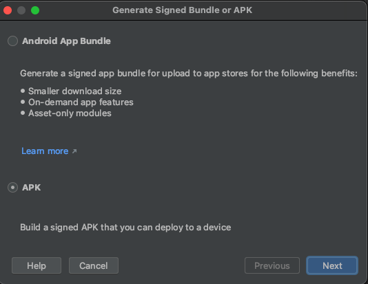 android studio 에서 android app 을 개발 후 apk 파일을 생성하려면 key file 이 필요하다.
