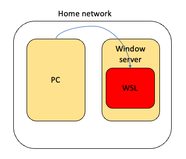 PC에서 결국 WSL로 접근을 해야하는데 네트워크 대역이 달라서 Window server에서 다른 대역을 연결 시켜줘야한다.