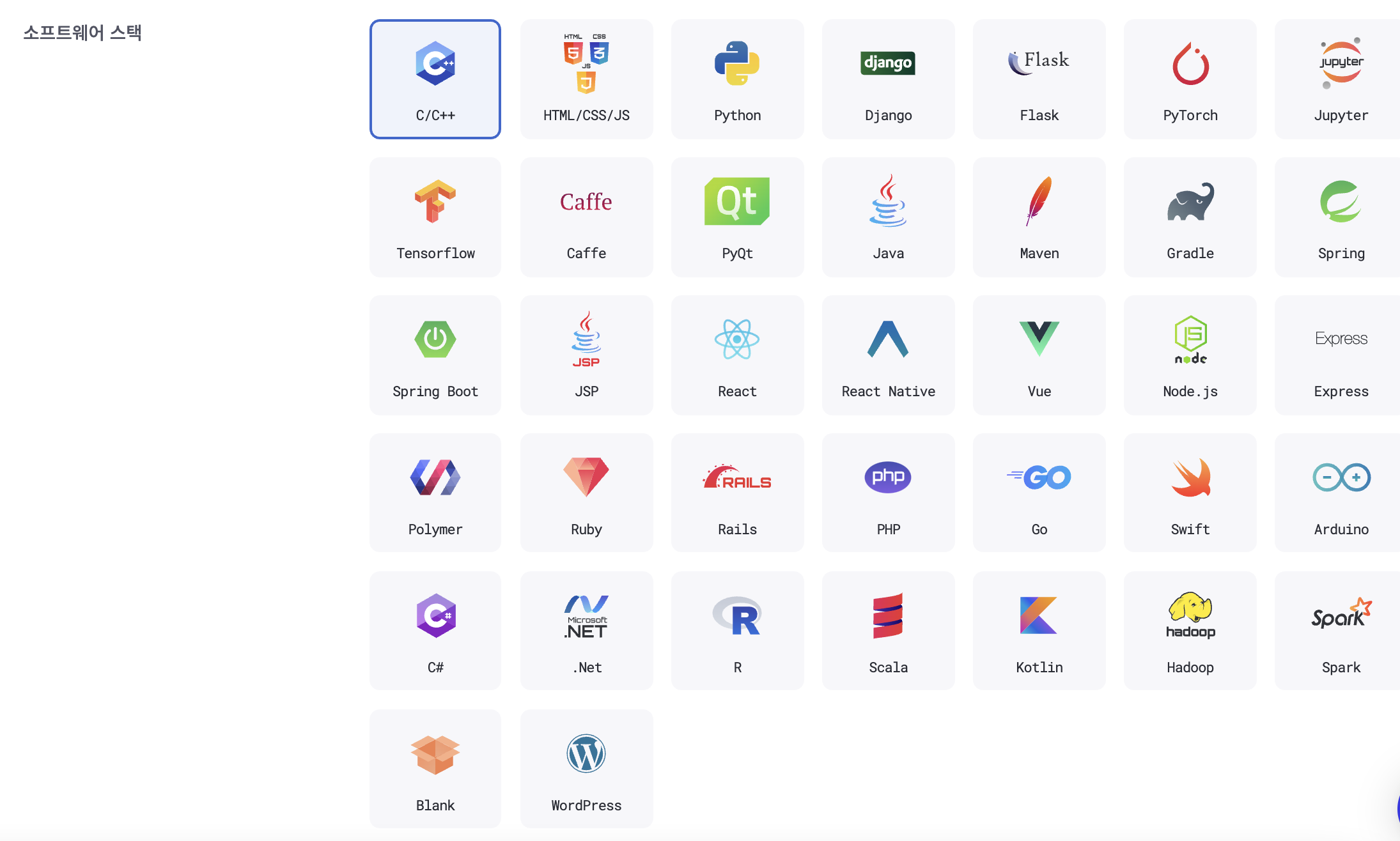 이것들 중에 나는 선택을 하여 버전을 고르고 생성을 하면 클라우드 서버의 os위에 컨테이너가 생기며 그 컨테이너에서 작업 및 프로젝트를 할수 있다.